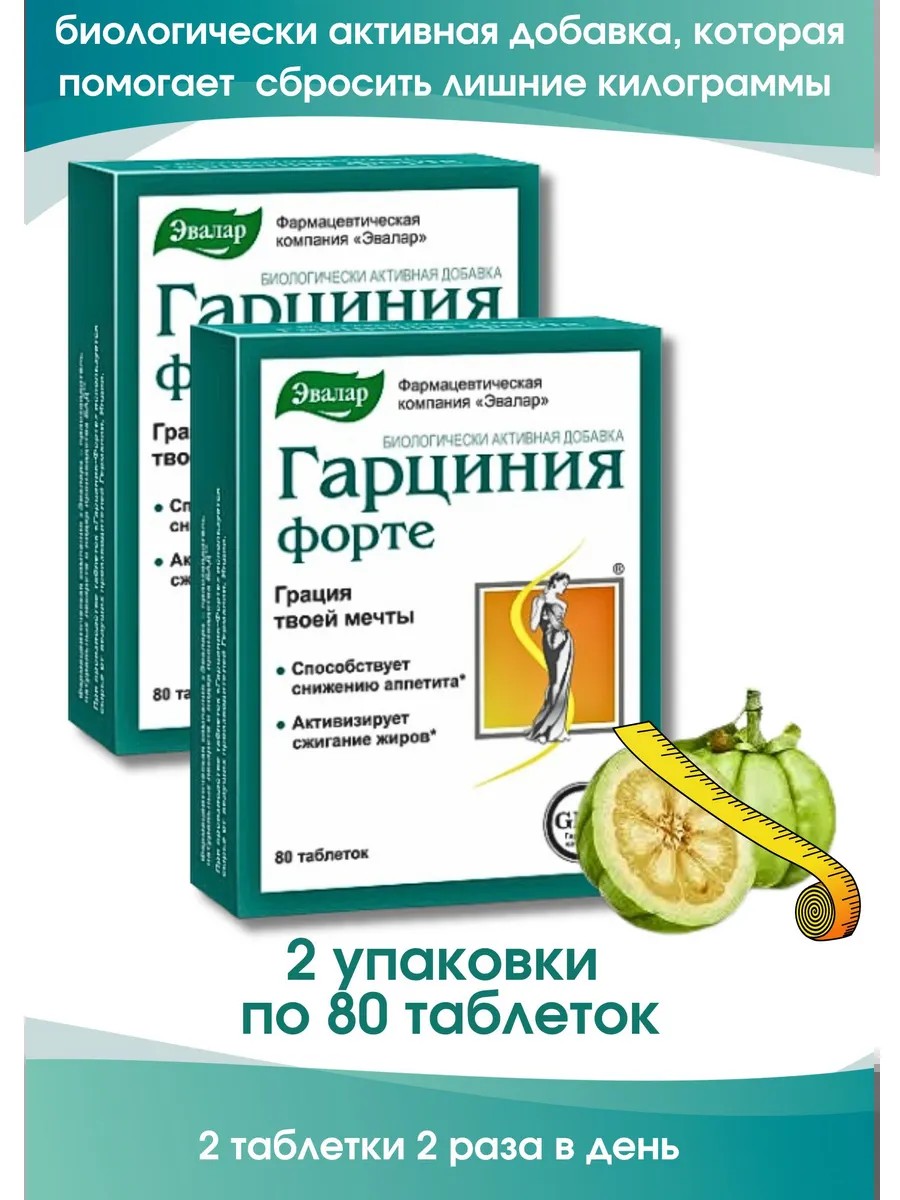 Garcinia Forte is a dietary supplement that helps accelerate weight loss and shed excess pounds. Each package contains 80 tablets, taken two times daily before meals. Regular use of Garcinia Forte relieves gastrointestinal congestion, inhibits fat synthesis, and reduces appetite. This allows for quick and effective weight loss and weight loss. This dietary supplement is not recommended for use during pregnancy, lactation, or if you are hypersensitive to any of its ingredients.