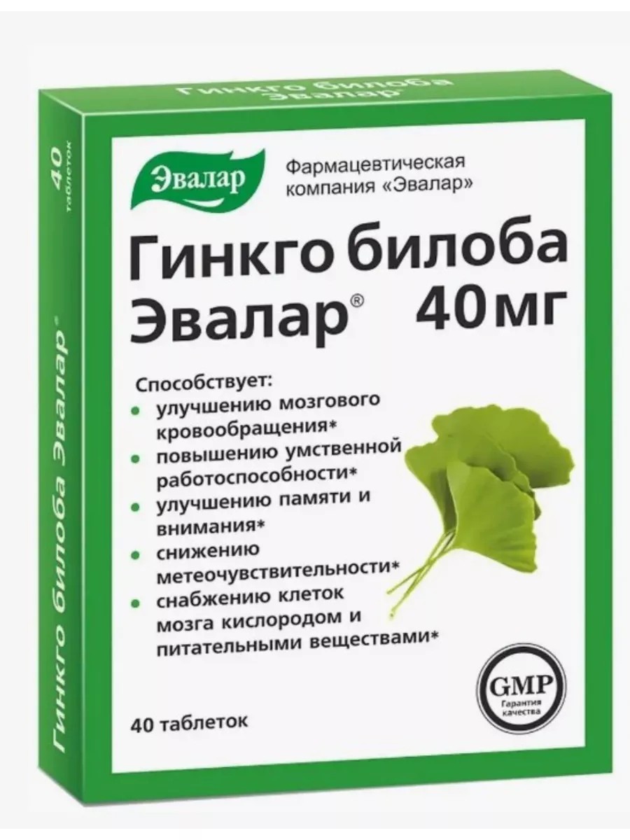 Биологически активная добавка к пище, предназначенная для улучшения памяти и концентрации внимания. Каждая упаковка содержит 40 таблеток, изготовленных из высококачественного экстракта гинкго билоба. Он помогает улучшить кровообращение в мозге и способствует улучшению памяти и внимания. Также гинкго билоба уменьшает утомляемость и повышает работоспособность. Препарат можно использовать как профилактическое средство для поддержания работоспособности мозга и улучшения качества жизни. Для достижения наилучшего эффекта рекомендуется принимать таблетки регулярно в соответствии с инструкцией. Способ применения и дозы