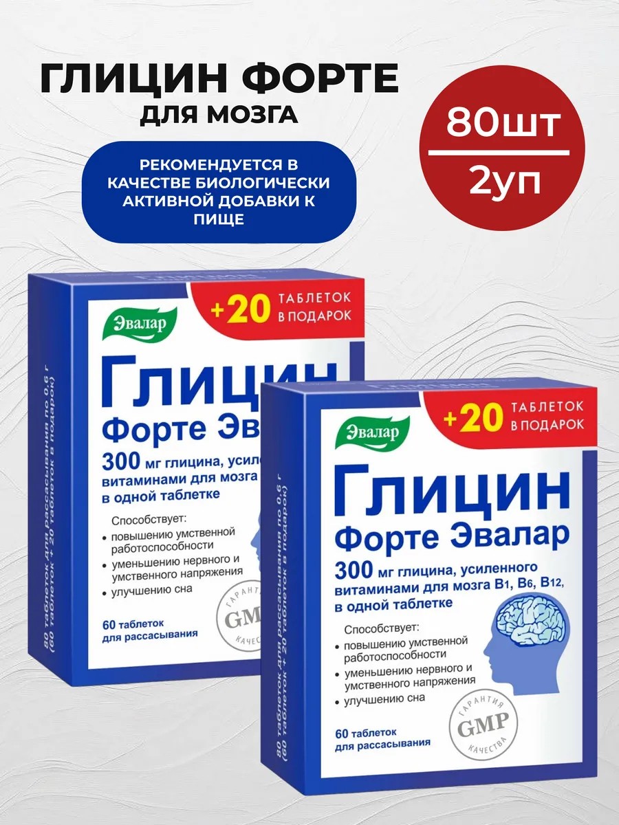 | Комплектация | Глицин форте эвалар 60+20 шт - 2уп |