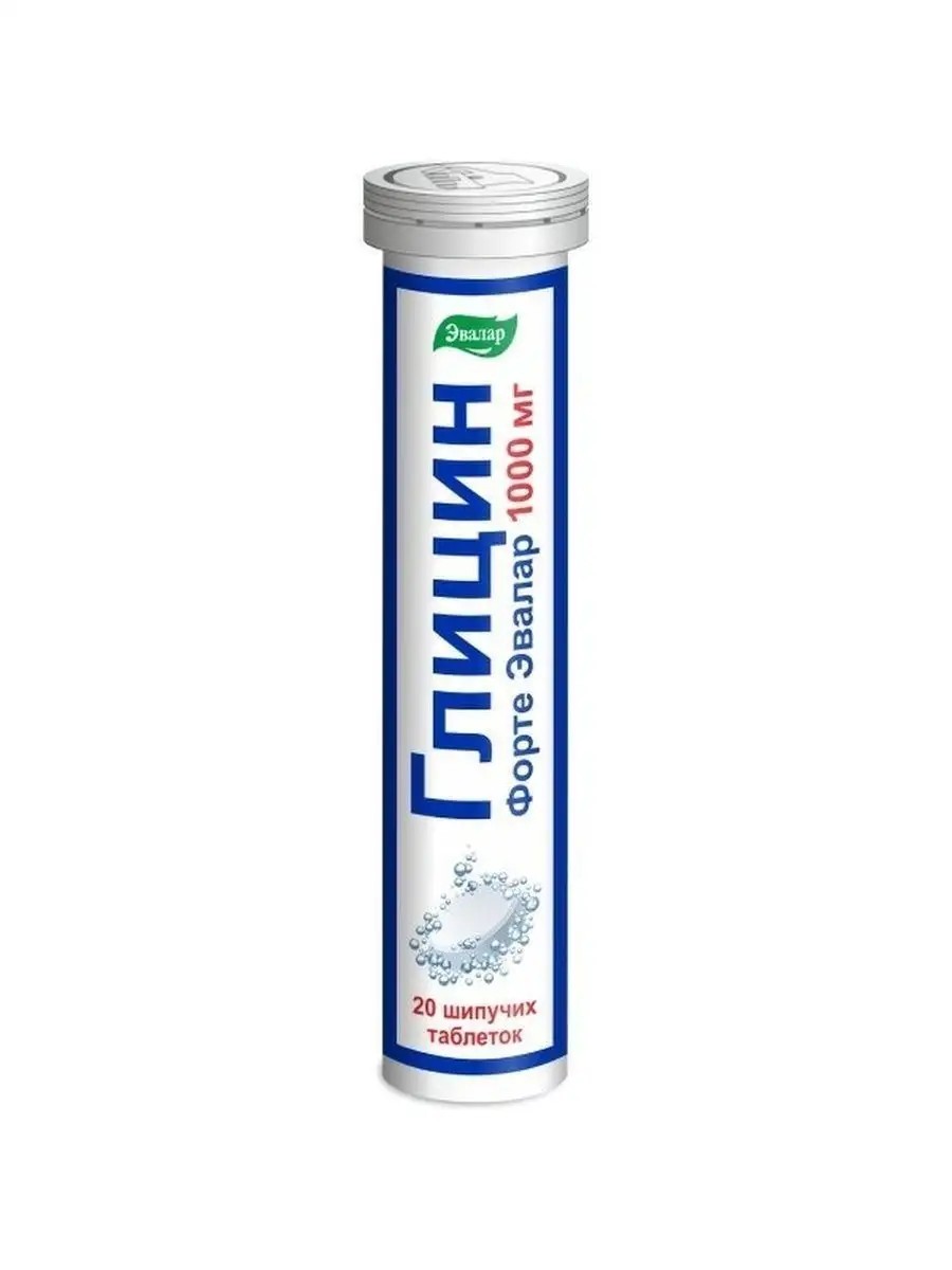 Глицин Форте Эвалар 1000 мг 20 шип. таб Рекомендован в качестве источника глицина, дополнительного источника витаминов В1, В6, В12, D3. Глицин Форте Эвалар 1000 мг 20 шип. таб - Инновационный комплекс в виде шипучего напитка, содержащий высокую дозировку глицина и усиленный витаминами для мозга (В1, В6, В12) и витамином Д3.1 таблетка Глицин Форте Эвалар 1000 мг 20 шип. таб содержит:Глицин 1000 мгВитамин D 15 мкг (600 МЕ)Витамин В1 5 мгВитамин В6 6 мгВитамин В12 9 мкгГлицин Форте Эвалар 1000 мг 20 шип. таб способствует*:• повышению умственной работоспособности;• улучшению обучаемости;• уменьшению психоэмоционального (нервного и умственного) напряжения;• улучшению настроения;• снижению усталости и утренней сонливости;• облегчению засыпания и улучшению сна;• ускорению детоксикации.* Информация подтверждена СоГР.ГЛИЦИНАминокислота глицин вырабатывается в организме человека, ее недостаток выражается в том, что человек быстрее устает, не может сосредоточиться на выполняемой задаче, становится нервным. Глицин нормализует и активизирует процессы защитного торможения в центральной нервной системе, способствует уменьшению психоэмоционального напряжения, повышению умственной работоспособности.ВИТАМИН DПоддерживает силу мышц и нервной системы - основу выносливости.Способствует повышению выработки серотонина - «гормона радости», который обеспечивает хорошее настроение, помогает регулировать эмоциональное состояние, бороться с раздражительностью, повышенной возбудимостью, капризностью, нормализует сон.ВИТАМИН В1Необходимый элемент для поддержания здоровья нервной системы, умственной работоспособности, оптимизации познавательной активности и мыслительной деятельности. Витамин B1 способствует улучшению метаболизма нервной ткани.ВИТАМИН В6Способствует нормальной работе головного мозга, необходим для усвоения витамина B12. Дефицит витамина B6 проявляется в раздражительности или заторможенности и сонливости.ВИТАМИН В12Способствует естественному обновлению структуры нервной ткани, снижению раздражительности, улучшению концентрации внимания и памяти. Участвует в процессах продукции ацетилхолина - нейромедиатора, при участии которого в мозге происходят процессы, связанные с памятью и обучением. Недостаток витамина B12 вызывает структурные изменения нервной ткани.Способ применения и дозы Глицин Форте Эвалар 1000 мг 20 шип. таб. Взрослым - по 1 таблетке в день, растворив в 200 мл воды комнатной температуры. Для улучшения сна рекомендуется вечерний прием. Продолжительность приема - 1 месяц.Состав: Глицин (1000 мг), лимонная кислота и гидрокарбонат натрия (регуляторы кислотности), мальтодекстрин, декстроза, ароматизатор натуральный «Манго», полиэтиленгликоль (носитель), сукралоза (подсластитель), цианокобаламин (витамин В12), пиридоксина гидрохлорид (витамин В6), тиамина гидрохлорид (витамин В1), холекальциферол (витамин D), полидиметилсилоксан (пеногаситель).