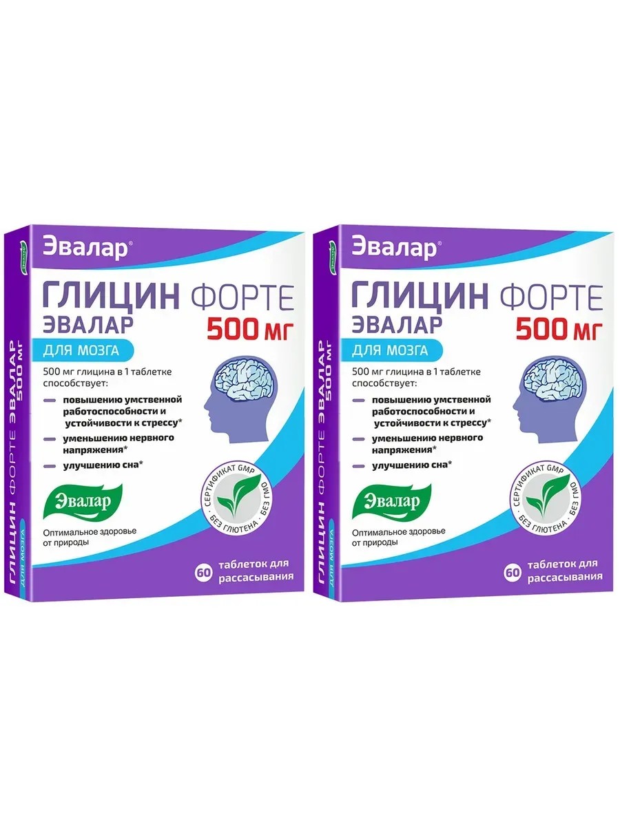 Эвалар Глицин Форте 500 мг, 60 таб для рассасывания (0,58г) х 2 уп