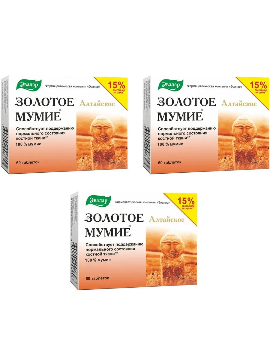 Эвалар Золотое мумие алтайское очищенное, 60 таб (200 мг) х 3 уп