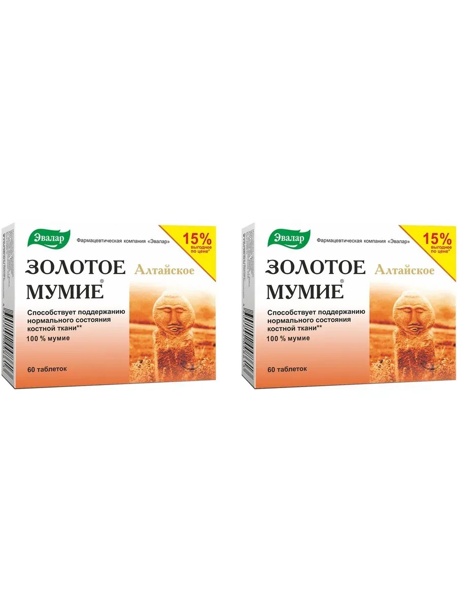 Эвалар Золотое мумие алтайское очищенное, 60 таб (200 мг) х 2 уп