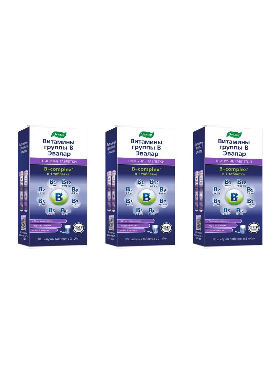 Эвалар Витамины группы В, 30 шипучих таб (5г) х 3 уп