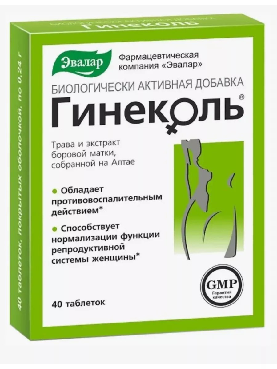 Trade NameBiologically active food supplement (BAS) "Ginekol", film-coated tablets, 0.24 g.