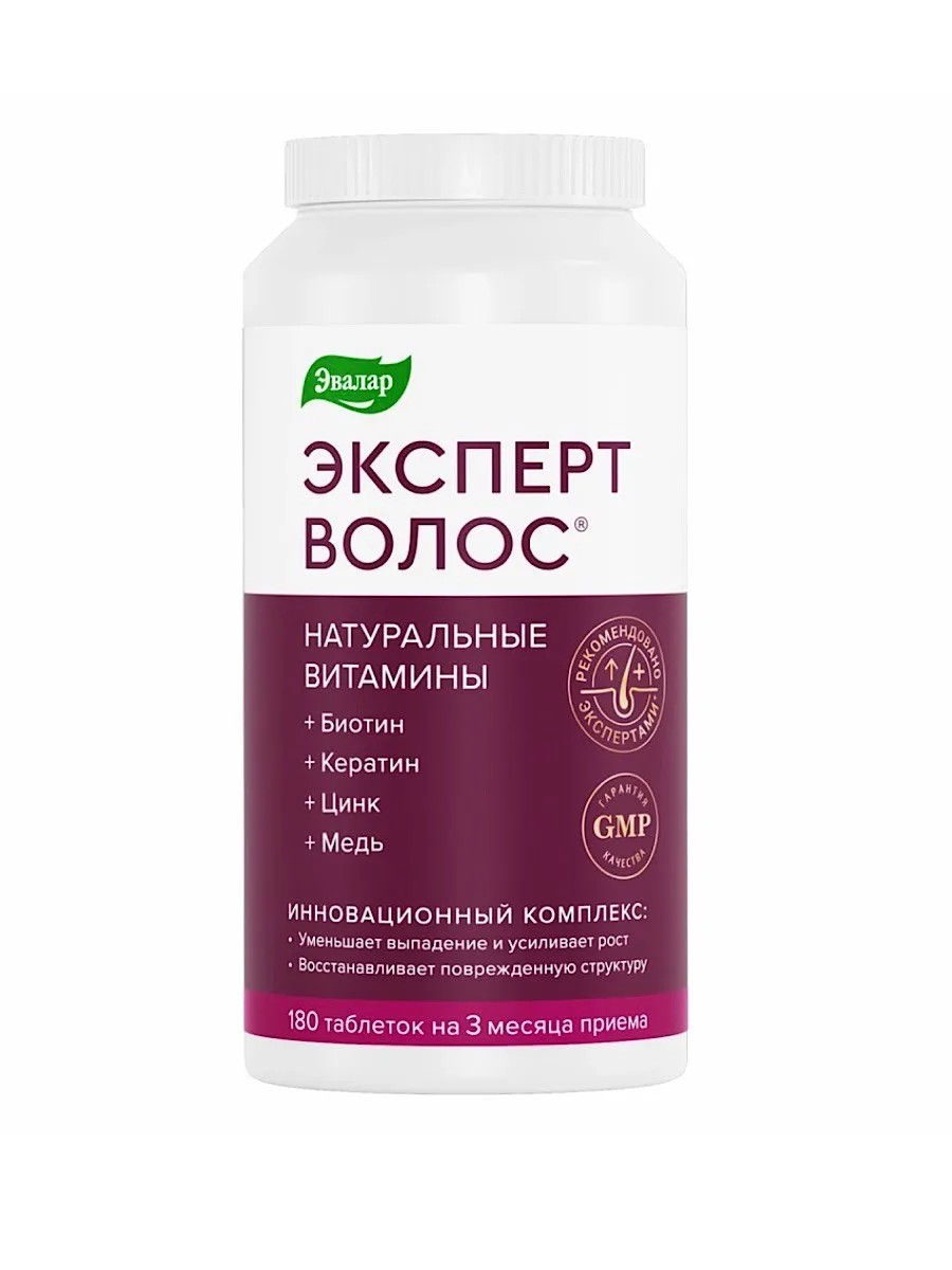 Recommended as a biologically active food supplement – an additional source of biotin, zinc, copper. An innovative complex of natural vitamins (from brewer's yeast autolysate), enhanced with amino acids and microelements for healthy and beautiful hair, helps: strengthen hair follicles, restore damaged hair structure; reduce hair loss, enhance hair growth, including after viral infections, increase hair volume and shine, normalize sebaceous glands and improve scalp condition. GMO-free, lactose-free, titanium dioxide-free, talc-free. Directions for use: Adults – 1 tablet 2 times daily. For conditions accompanied by an increased need for the components of the complex – as recommended by a doctor. Duration of treatment: 3 months. Regular use with a 10-day break is allowed.