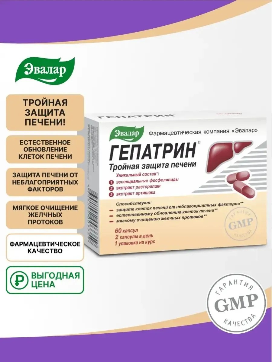 Защитите свою печень от токсинов и обеспечьте ее здоровье с помощью эффективных капсул от Эвалар - Гепатрин. Этот биологически активный продукт (БАД) содержит сразу три натуральных активных компонента для тройной защиты печени. Такое сочетание компонентов дает синергичное усиленное действие, не нагружая ее лишними химическими веществами. В его составе: