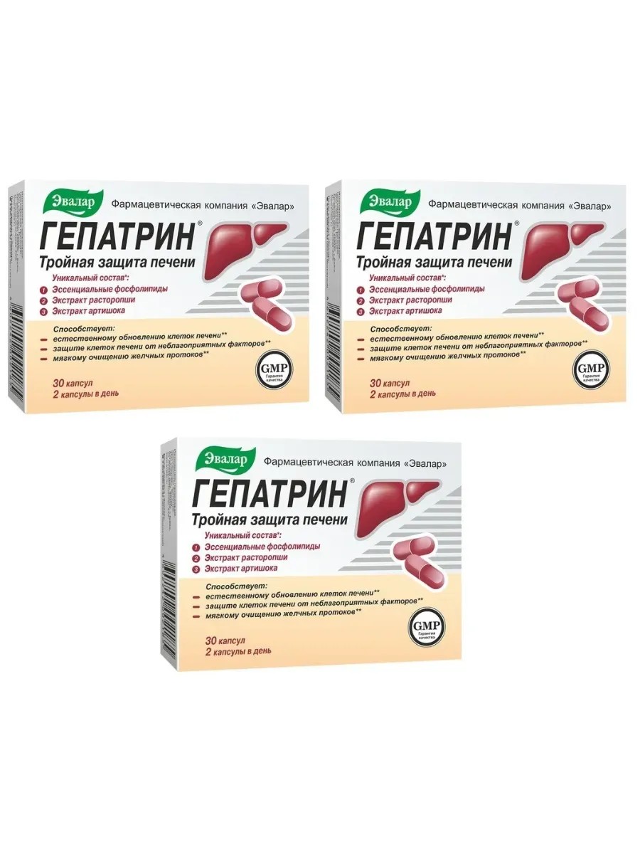 Эвалар Гепатрин для защиты печени, 30 капсул (0,33г) х 3 уп