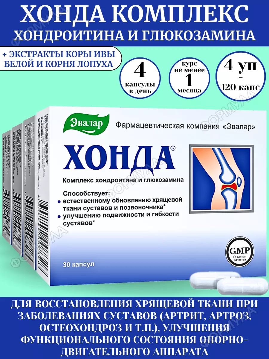 Эвалар Хонда для подвижности и гибкости суставов 30капс*4уп