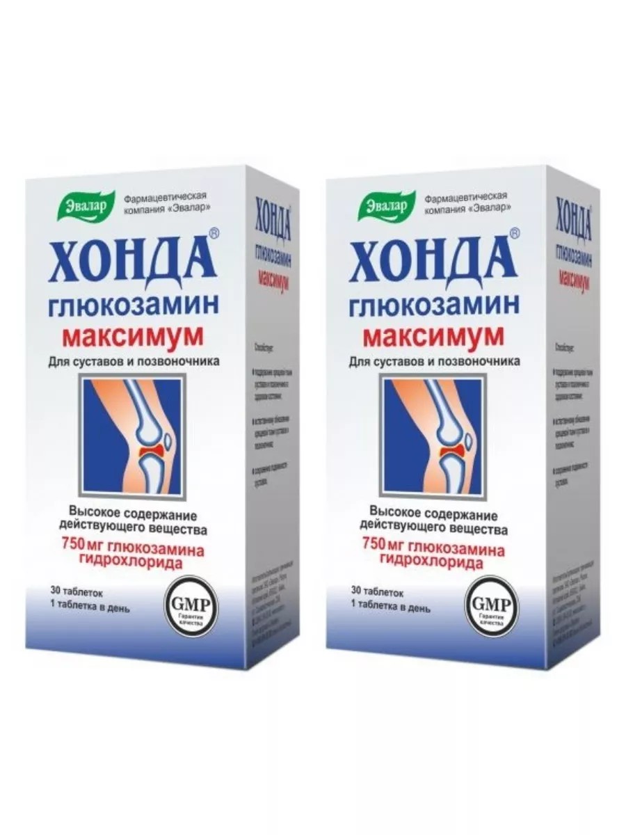 The pharmaceutical company ZAO Evalar has developed a biologically active food supplement Honda Glucosamine Maximum, 1 tablet of which contains 750 mg of glucosamine hydrochloride and a daily dose of B vitamins.