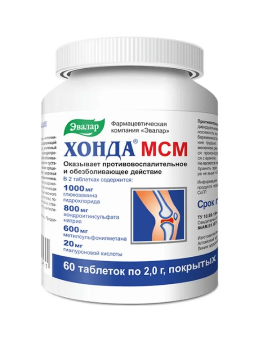 Эвалар Хонда МСМ, глюкозамин хондроитин, 60 таблеток