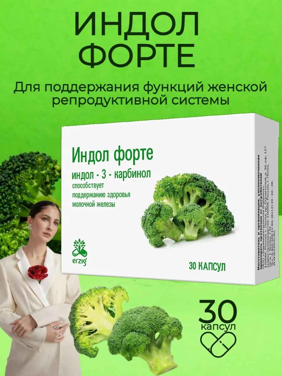 Indole Forte Evalar is a natural, non-hormonal dietary supplement for women's reproductive health that is non-addictive and non-side-effect-producing. Indole Forte Evalar consists of indole-3-carbinol, a substance found in cruciferous plants that is successfully used to maintain the health of the female reproductive system (breast, endometrium, myometrium, cervix, and ovaries). Indole Forte is also enhanced with broccoli concentrate. Research shows that broccoli increases the effectiveness of indole-3-carbinol up to 80 times! Directions: Adults take 1 capsule once daily with meals. Duration of use: at least 1 month. Repeat if necessary.