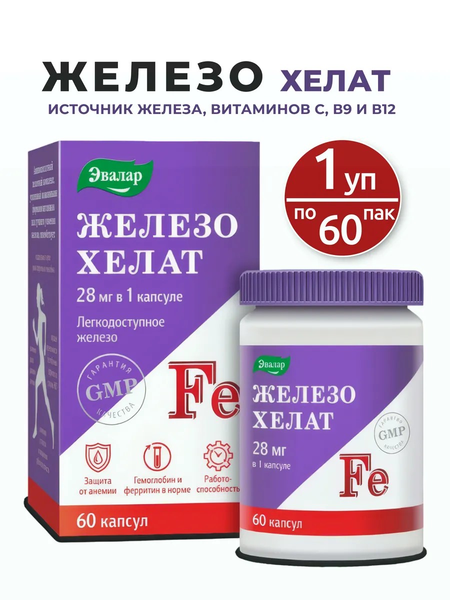 Эвалар Железо хелат 60 шт. капсулы массой 0,25 г-1уп