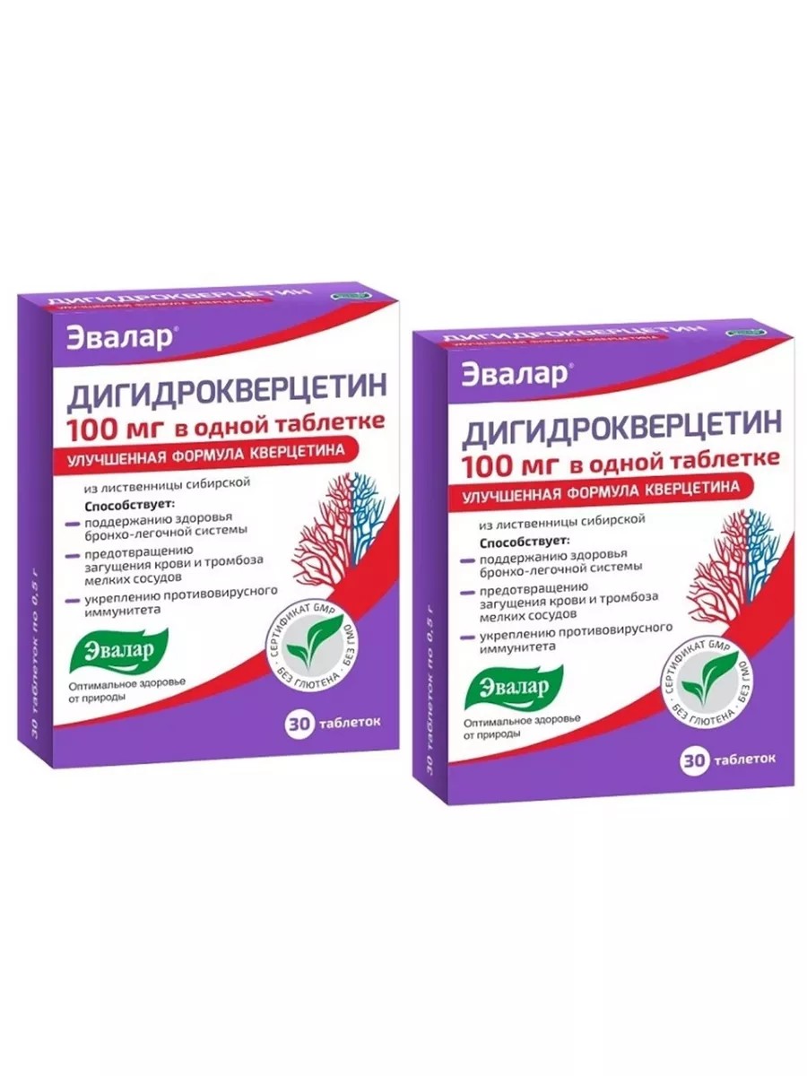 Дигидрокверцетин - это препарат, состоящий из 100 мг активного вещества, содержащийся в 30 таблетках, каждая из которых весит 0,5 грамма. Дигидрокверцетин является биофлавоноидом, который имеет антиоксидантные свойства и способствует улучшению обмена веществ и укреплению иммунитета. Применяется как дополнительное средство в комплексной терапии заболеваний сердечно-сосудистой системы, желудочно-кишечного тракта и других заболеваний, связанных с нарушениями обмена веществ. Этот препарат может быть полезен для взрослых и детей, предназначен для внутреннего приема после приема пищи.