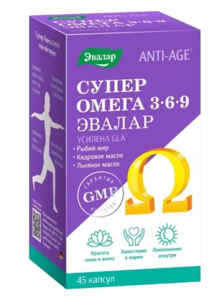 Super Omega 3-6-9 - это биологически активная добавка, предназначенная для поддержания здоровья сердечно-сосудистой системы, улучшения обмена веществ и повышения иммунитета. Капсулы содержат необходимые жирные кислоты Омега-3, Омега-6 и Омега-9, которые оказывают положительное влияние на работу мозга, снижают уровень холестерина в крови и оказывают противовоспалительный эффект. Продукт изготовлен из высококачественных компонентов и не содержит искусственных красителей, ароматизаторов и консервантов. Рекомендуется для взрослых и детей старше 12 лет в качестве дополнительного источника питания или по рекомендации врача. Одна упаковка содержит 45 капсул, массой 12 грамм.