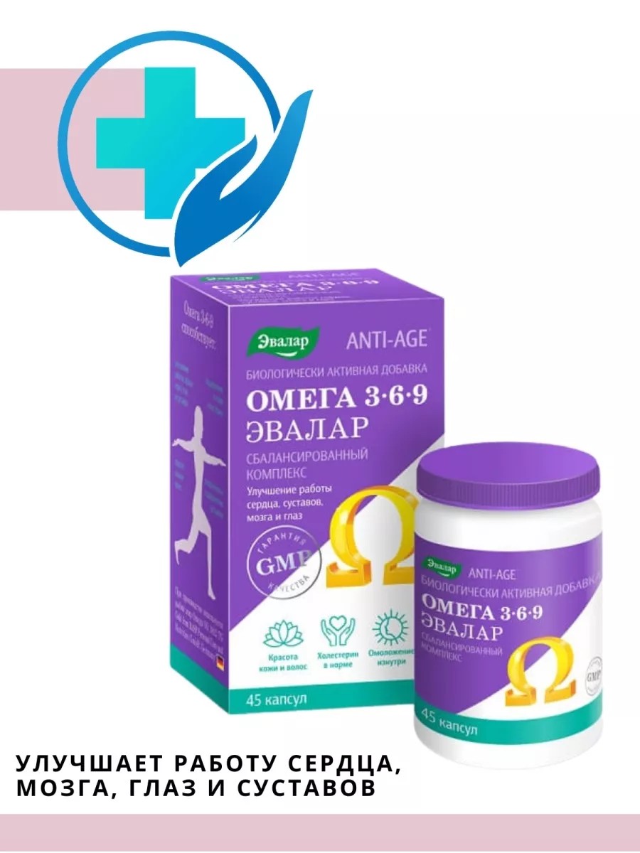 Omega 3-6-9 Super is a balanced complex of three fatty acids - omega-3, omega-6 and omega-9, - enhanced with GLA, which helps to: - improve the functioning of the heart, brain, eyes and joints; - maintain normal cholesterol levels; - beautiful skin and hair; - rejuvenate and improve the health of the body (Anti-age effect). Each capsule of the Omega 3-6-9 Super complex from Evalar contains: - Cedar oil (omega-6 (GLA), omega-9); - Flaxseed oil (omega-3, omega-6, omega-9); - Fish oil (omega-3). This combination of ingredients ensures a balanced intake of essential polyunsaturated fatty acids into the body. RECOMMENDED USE: Adults and children over 14 years of age, take 3 capsules daily with meals. Duration of treatment: at least 1 month. If necessary, treatment can be repeated.