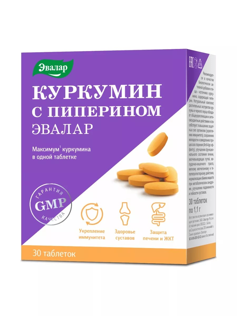 Эвалар Куркумин с пиперином 30 табл./1уп