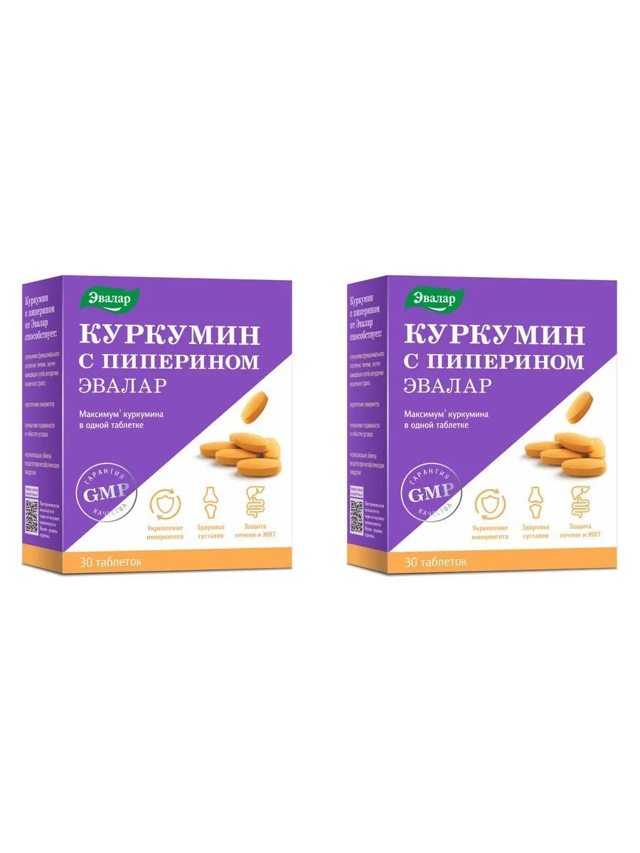 Эвалар куркумин с пиперином n30 табл по 1,1г - 2шт