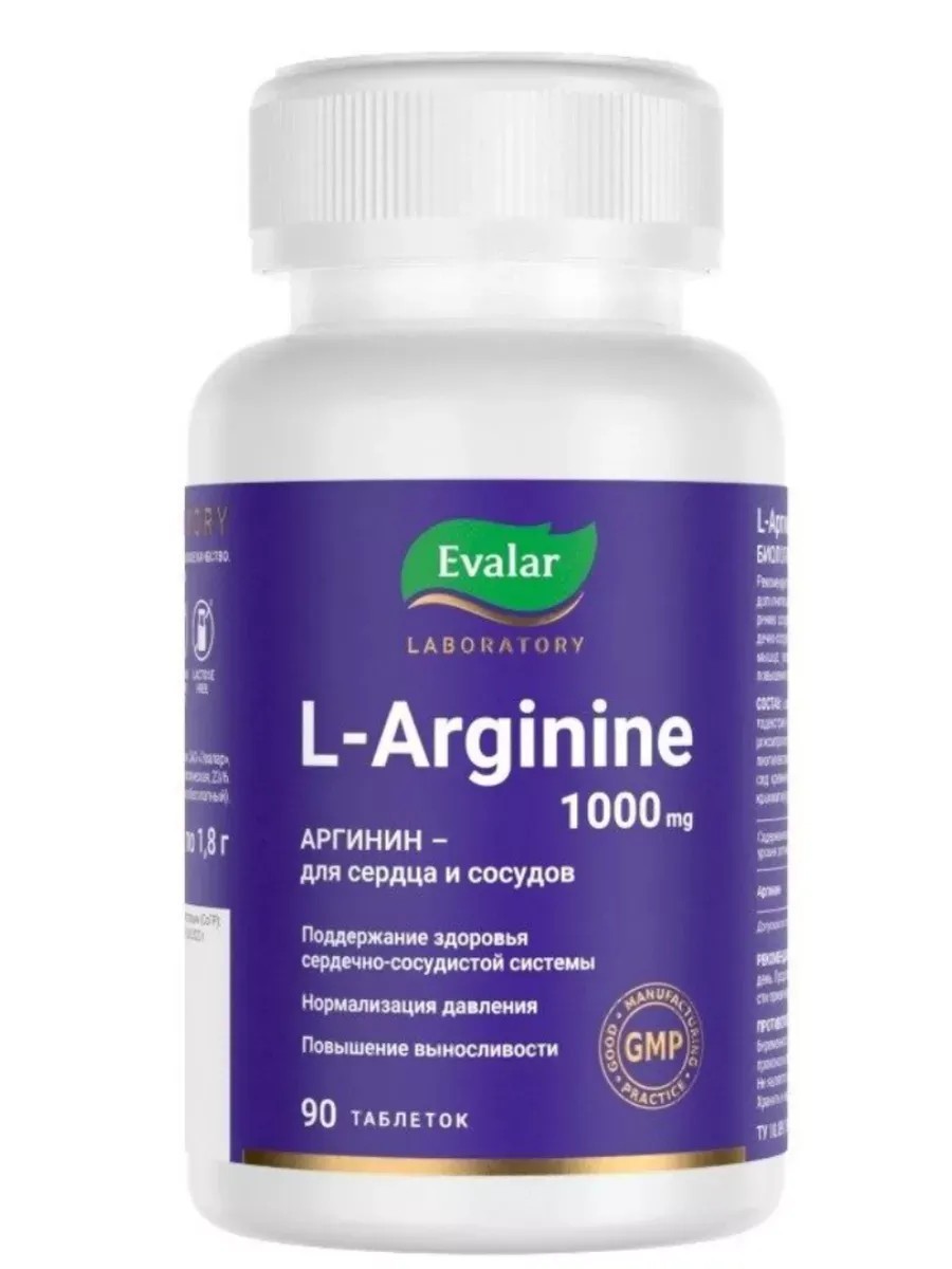 Эвалар L-Аргинин 1000 мг/ L-Arginine 1000 mg, 90 таблеток по 1,8 г