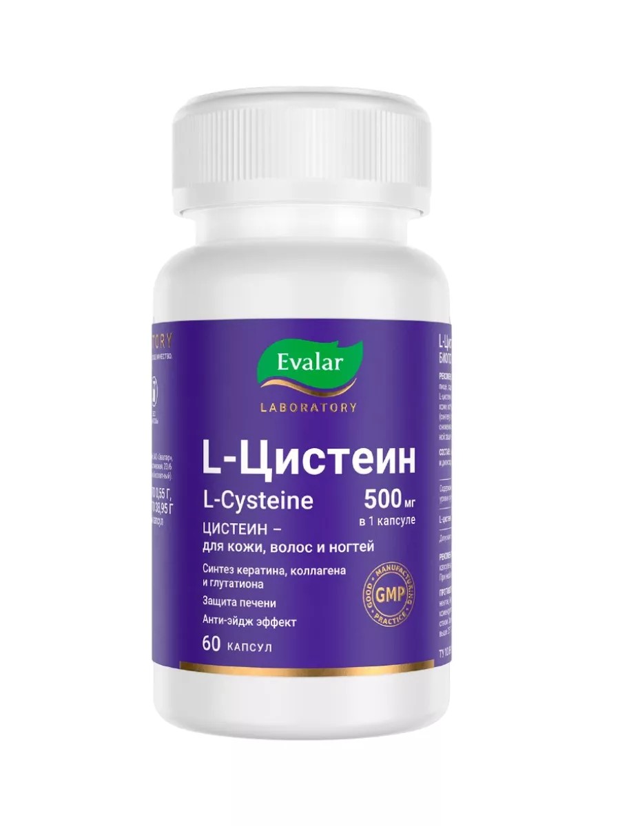 L-cysteine 500 mg from Evalar Laboratory in the active L-form is quickly absorbed and acts at the cellular level.