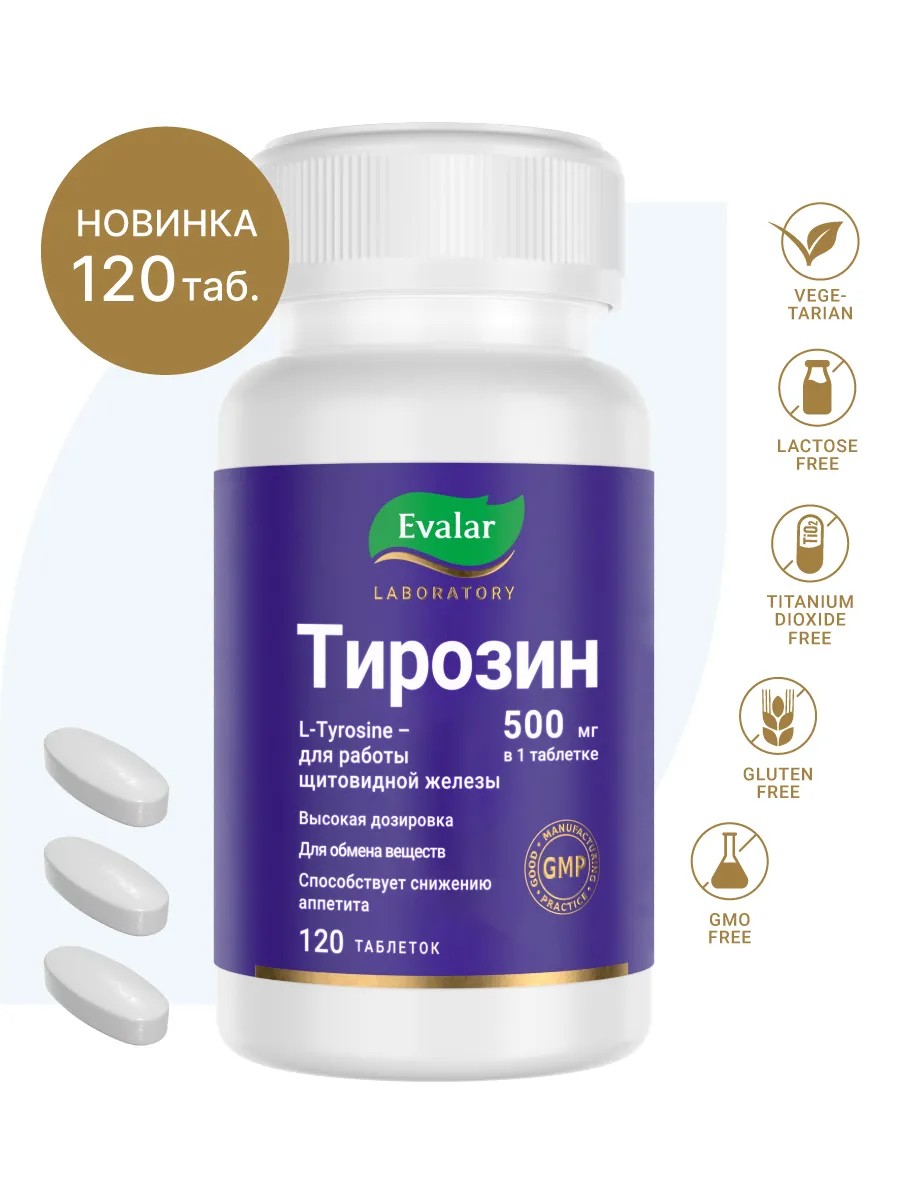 Эвалар L тирозин 500 мг, L-tyrosine, 120 таблеток