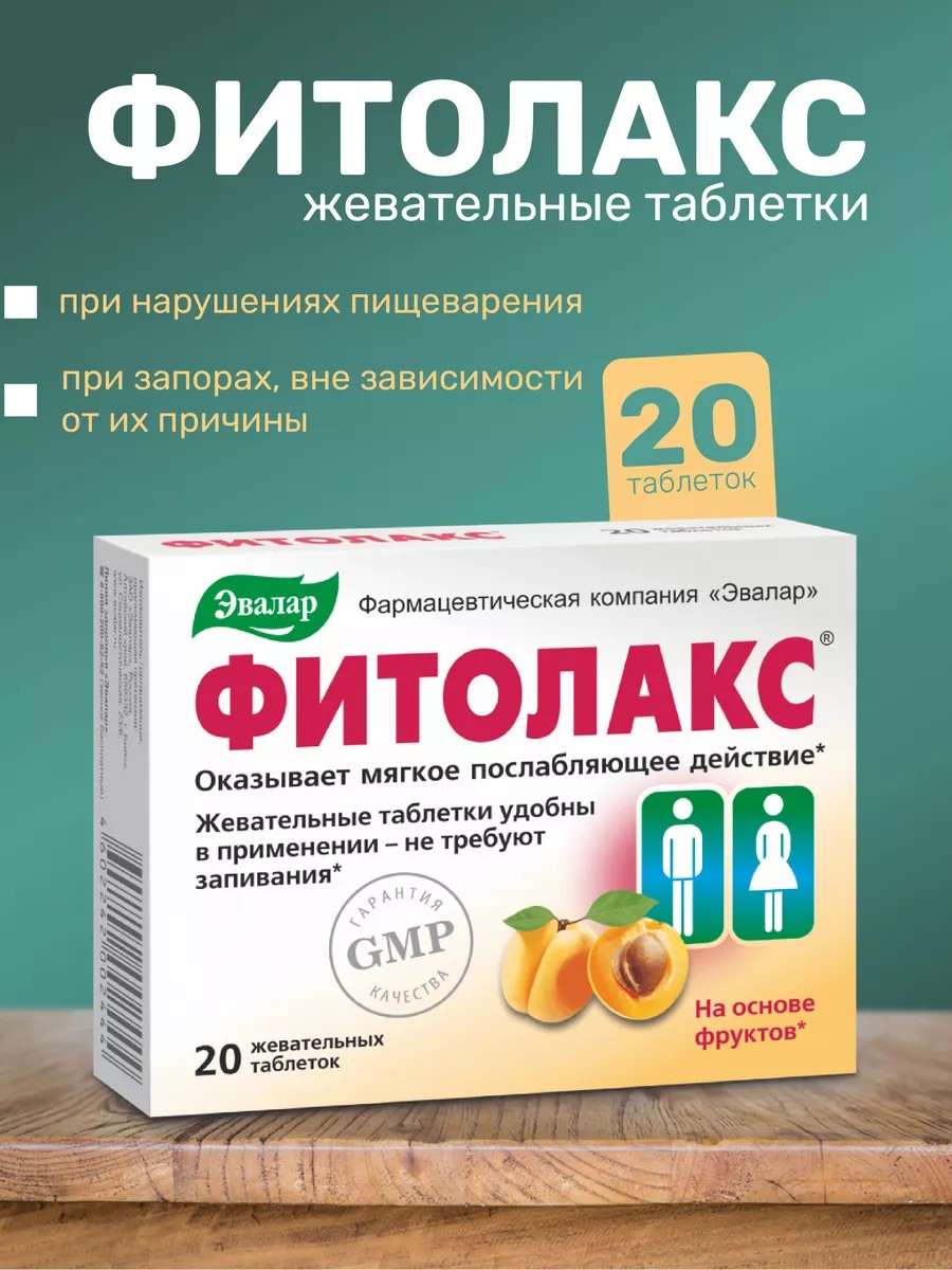 | Комплектация | Слабительное Фитолакс жевательные таблетки 20шт. - 1уп. |