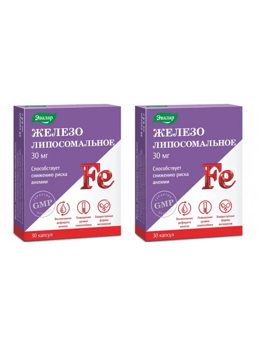 Эвалар Железо липосомальное, 30 капсул (0,6г) х 2 уп
