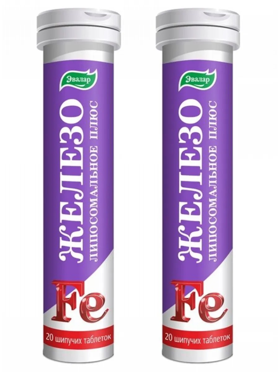 Эвалар Железо липосомальное Плюс, 20 шипучих таб (3,8г) х 2 уп