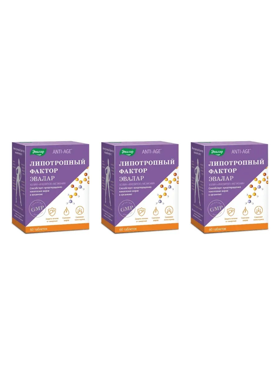 Эвалар Липотропный фактор для сжигания жиров, 60 таб (1,2г) х 3 уп