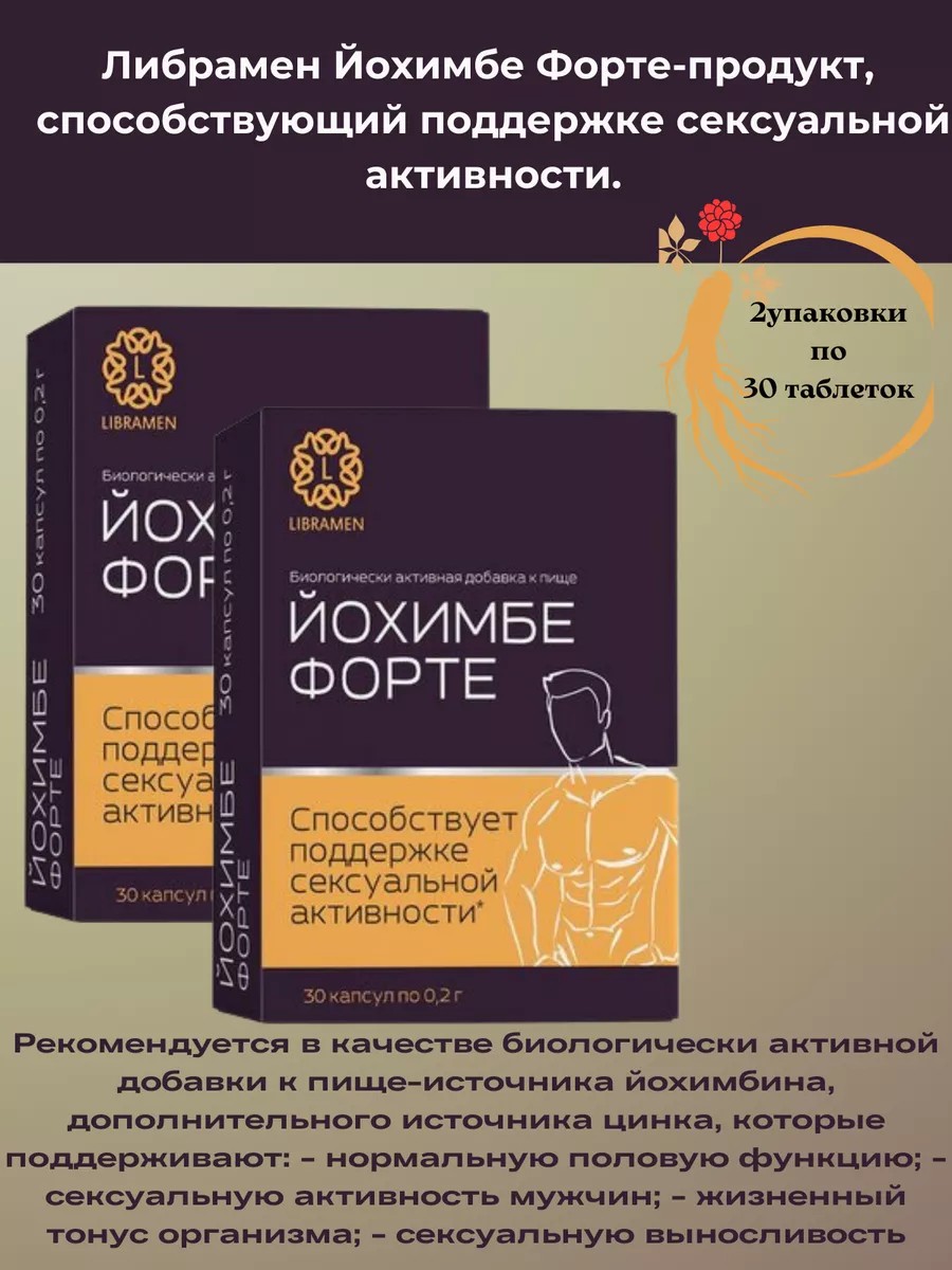 | Комплектация | Либрамен Йохимбе Форте Капс N 30-2 упаковки |