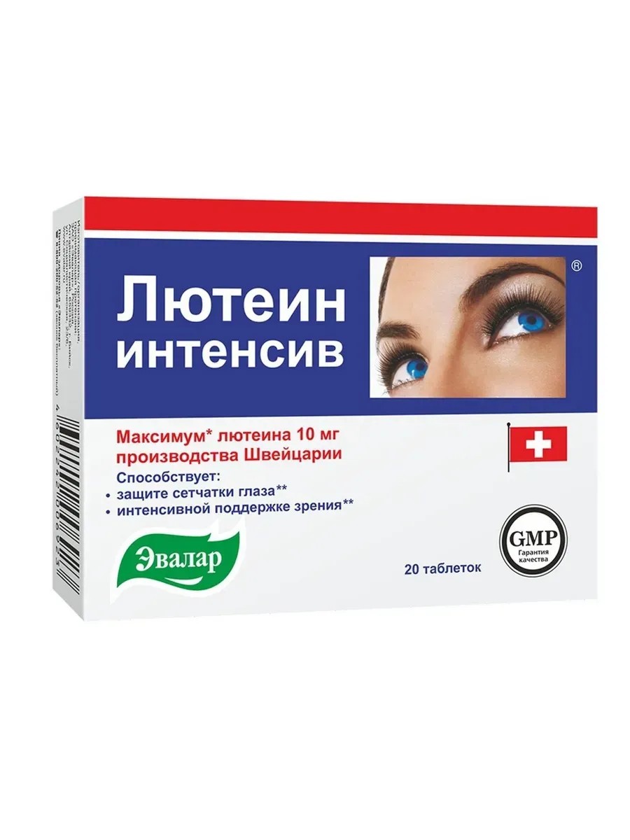 Лютеин-интенсив содержит необходимые для зрения витамины и микроэлементы, а также максимальное количество лютеина и зеаксантина – каротиноидов, которые концентрируются в центральной области сетчатки глаза (макуле), обеспечивающей остроту зрения и цветовое восприятие. Прием комплекса Лютеин-интенсив поможет решить проблему дефицита лютеина и зеаксантина – единственных из природных каротиноидов, способных накапливаться в тканях глаза и защищать его от воздействия внешних агрессивных факторов. Лютеин-интенсив:-обеспечивает максимальный уровень поступления в организм лютеина (10 мг в 2-х таблетках) и его накопление в сетчатке до физиологической нормы;-содержит зеаксантин, витамины А, В1, В2, В6, С, РР, цинк;-способствует защите сетчатки глаза и интенсивной поддержке зрения.-Комплекс биологически активных веществ Лютеин-интенсив способствует улучшению функционального состояния зрительного аппарата:-прием лютеина и зеаксантина приводит к их накоплению в сетчатке;-прием антиоксидантов (витамина А, витамина С, лютеина, зеаксантина, цинка) защищает хрусталик глаза от помутнения;-комплекс необходимых витаминов и антиоксидантов поддерживает метаболические процессы на клеточном уровне и способствует естественному поддержанию зрительных функций.-