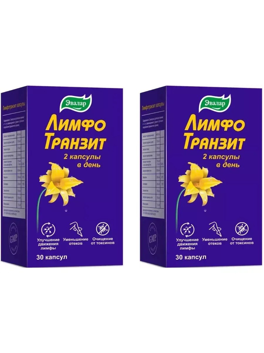 Эвалар ЛимфоТранзит для уменьшения отёков, 30 капсул (0,46г) х 2 уп