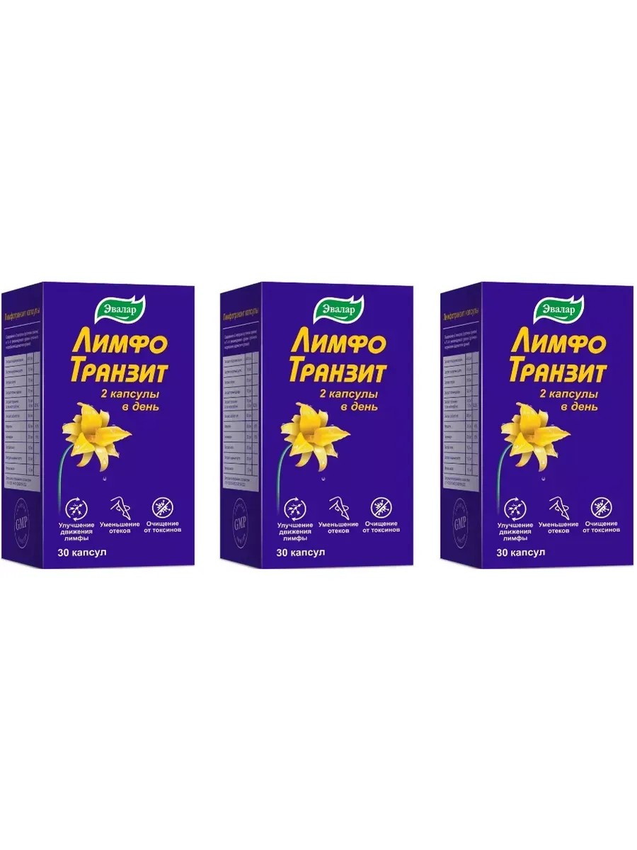 Эвалар ЛимфоТранзит для уменьшения отёков, 30 капсул (0,46г) х 3 уп