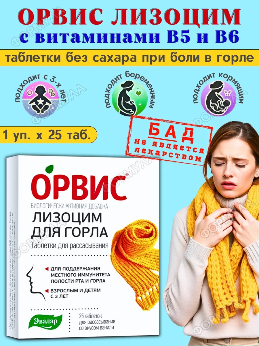 Эвалар Орвис Лизоцим при боли в горле 25таб*1уп