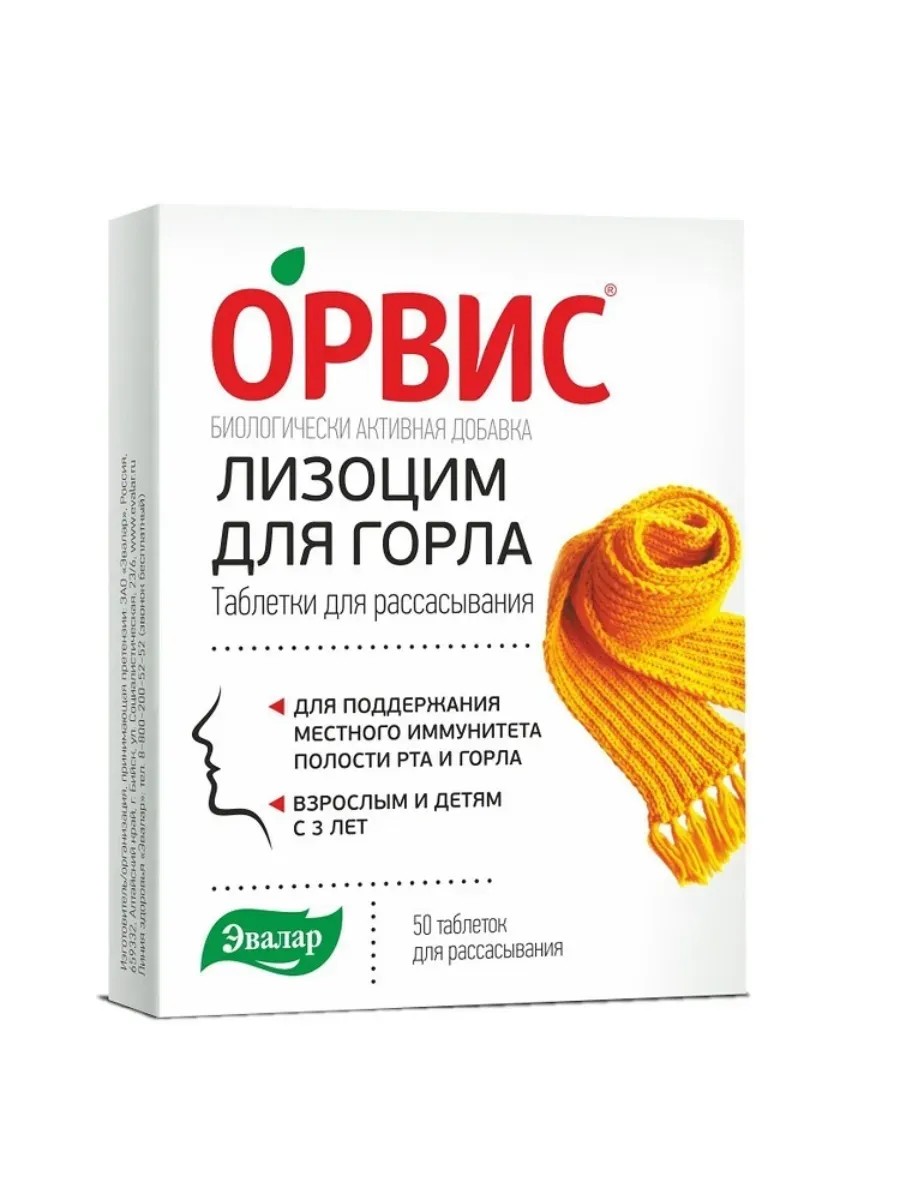 Эвалар Орвис Лизоцим для горла, 25 таблеток (0,24г)
