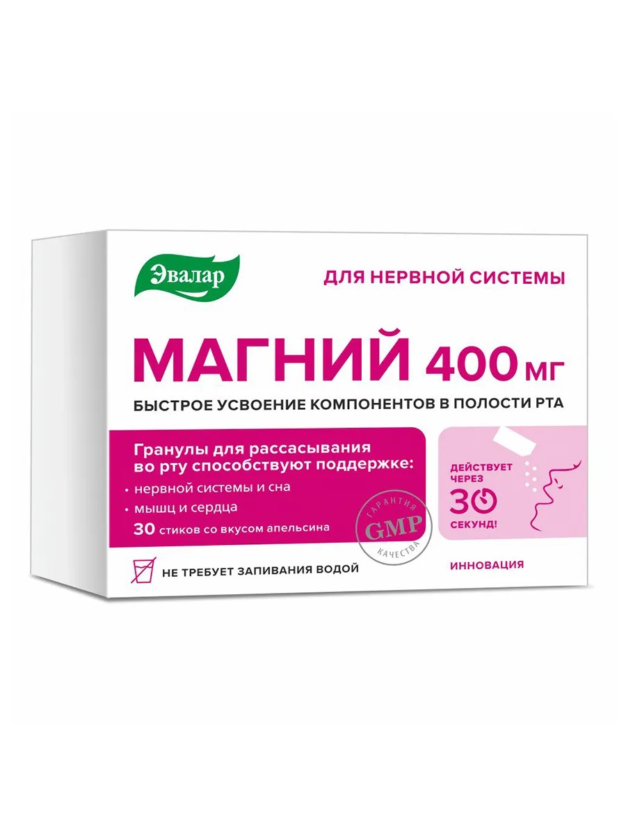 | Full name of product | Magnesium 400 mg, 30 sticks, Evalar |