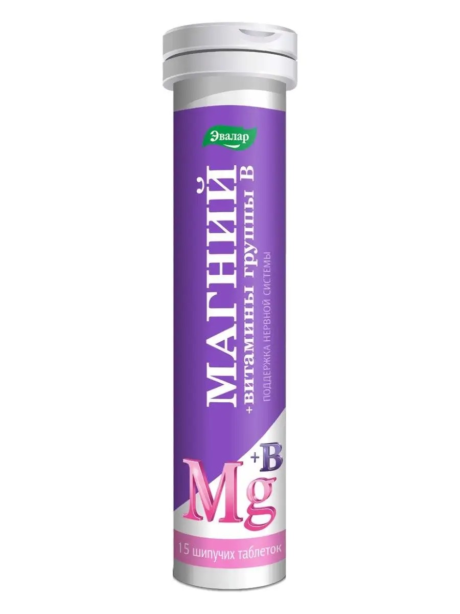 Эвалар Магний + витамины группы В, шипучие таблетки 15шт