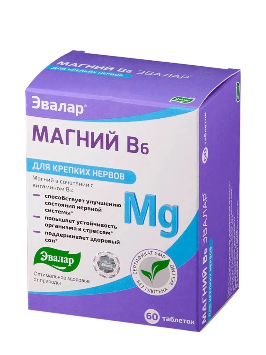 Magnesium B6 Evalar is a combination complex consisting of an organic, bioavailable magnesium salt (magnesium aspartate) and vitamin B6. Vitamin B6 improves magnesium absorption and metabolism in cells and has the ability to fix magnesium within the cell, which is crucial because magnesium is rapidly eliminated from the body. Aspartate transports Mg++ ions and facilitates their penetration into the intracellular space. Upon entering cells, aspartate is involved in metabolic processes. Magnesium is a vital micronutrient – it is needed by virtually every cell in the body. Magnesium is essential for energy processes, is responsible for the transmission and speed of nerve impulses from the brain to peripheral nerve endings and muscles, and is involved in reducing neuromuscular tension, maintaining normal neuromuscular excitability, including myocardial contractility. Under stress, the body loses significant amounts of magnesium ions, so supplementing with magnesium protects against the effects of stress. Magnesium supports cellular immunity, regulates metabolism, and promotes proper calcium distribution throughout the body. Magnesium deficiency can occur due to poor diet, and magnesium requirements increase with physical and mental activity, pregnancy, and stress. If magnesium deficiency occurs, the body is forced to draw magnesium from vital organs, which can negatively impact their health. Magnesium deficiency manifests itself as calf cramps, a general feeling of fatigue, difficulty sleeping, nervousness, increased blood pressure, and changes in heart rate.