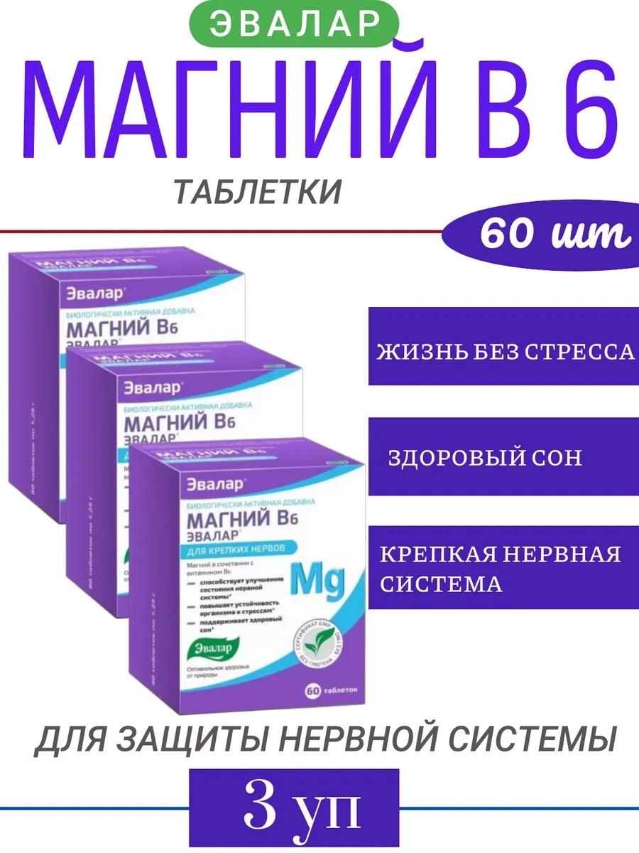 Эвалар Магний В6 Эвалар 60 табл-3уп