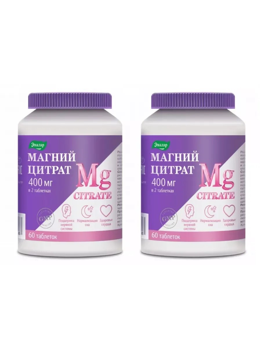 Эвалар Эвалар Магний цитрат, 60 таблеток по 2 г х 2 упаковки