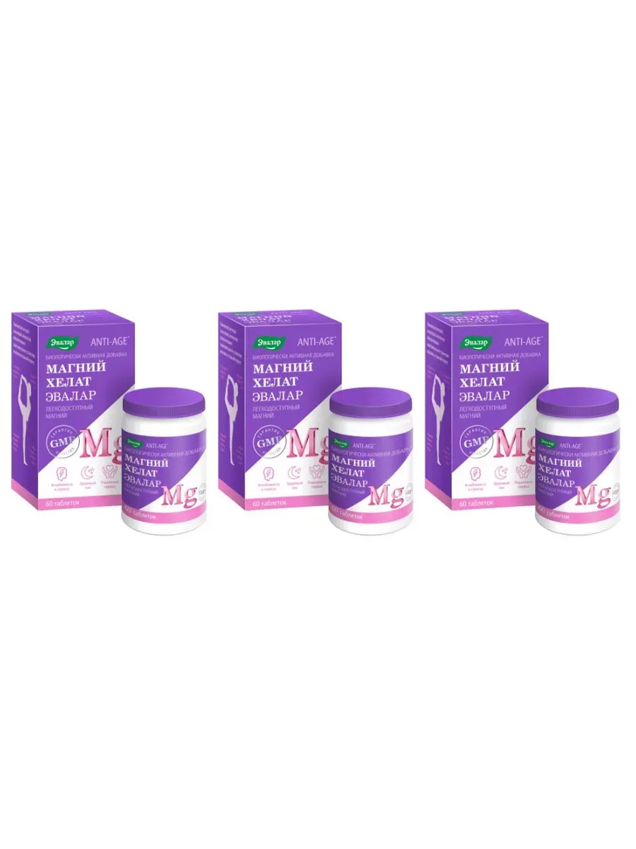 Эвалар Магний Хелат, 60 таблеток по 1,4 г х 3 упаковки