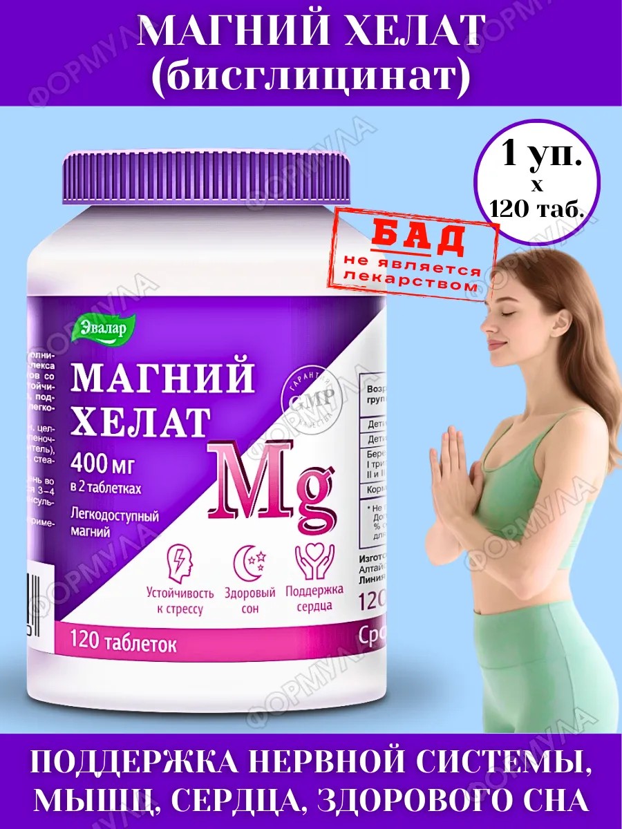 Эвалар Магний Хелат (бисглицинат) для нервной системы 120таб*1уп
