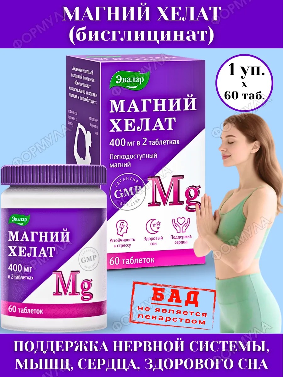 Эвалар Магний Хелат (бисглицинат) для нервной системы 60таб*1уп