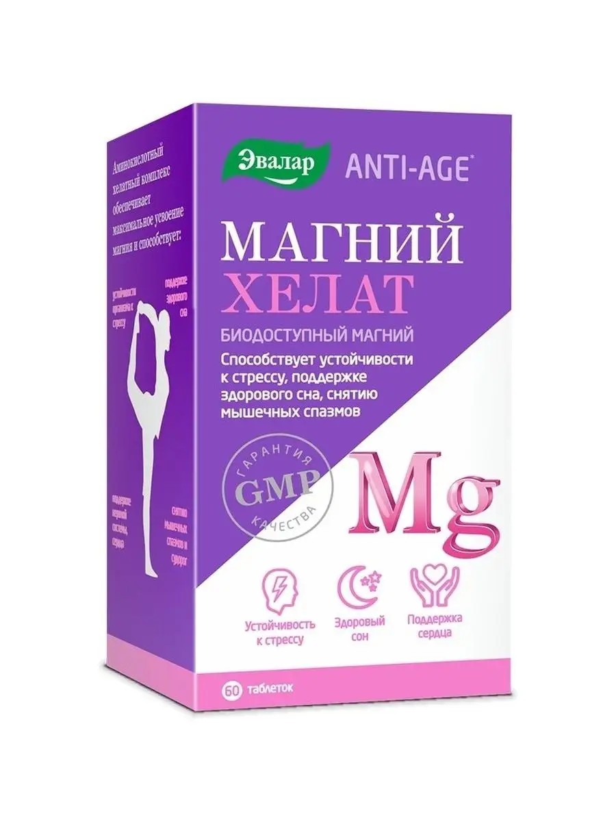 Why are you often irritable, distracted, and sleep-deprived? A magnesium deficiency may be the cause. This mineral's primary function is to support the nervous system and increase the body's resilience to stress. It is also beneficial for preventing cardiovascular disease. Low magnesium levels make it more difficult to cope with emotional stress and physical exertion. More serious consequences are also possible: seizures, high blood pressure, irregular heartbeat, and increased risk of osteoporosis, heart attacks, and strokes. For maximum magnesium absorption, try Evalar's easily absorbable Magnesium Chelate complex.