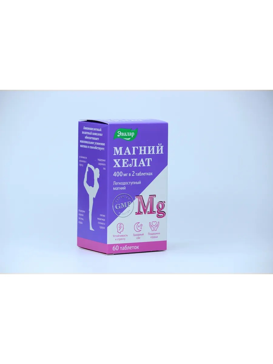 Evalar Magnesium Chelate is an easily absorbed chelated complex designed to support the nervous system, muscles, heart, and healthy sleep.