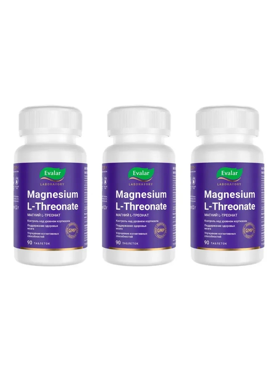 Эвалар Эвалар Магний L-треонат, 90 таблеток по 1,2 г x 3 уп