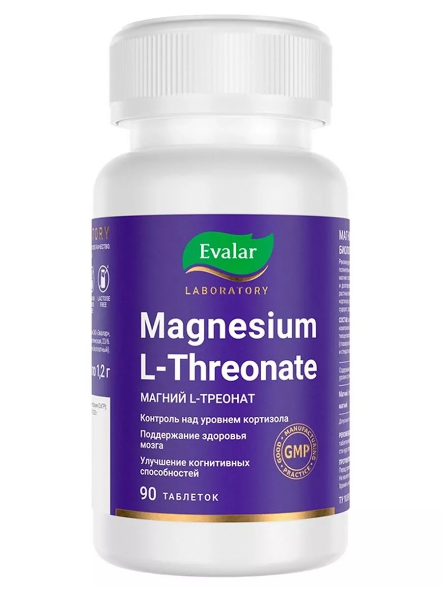 Magnesium L-threonate is a bioavailable form of magnesium that promotes: improved cognitive function, short-term and long-term memory, learning ability, and attention; protection of the brain from age-related changes; stress reduction, suppression of excess cortisol release, muscle relaxation, relief of muscle spasms and cramps, and brain health, without causing bloating, constipation, or diarrhea.