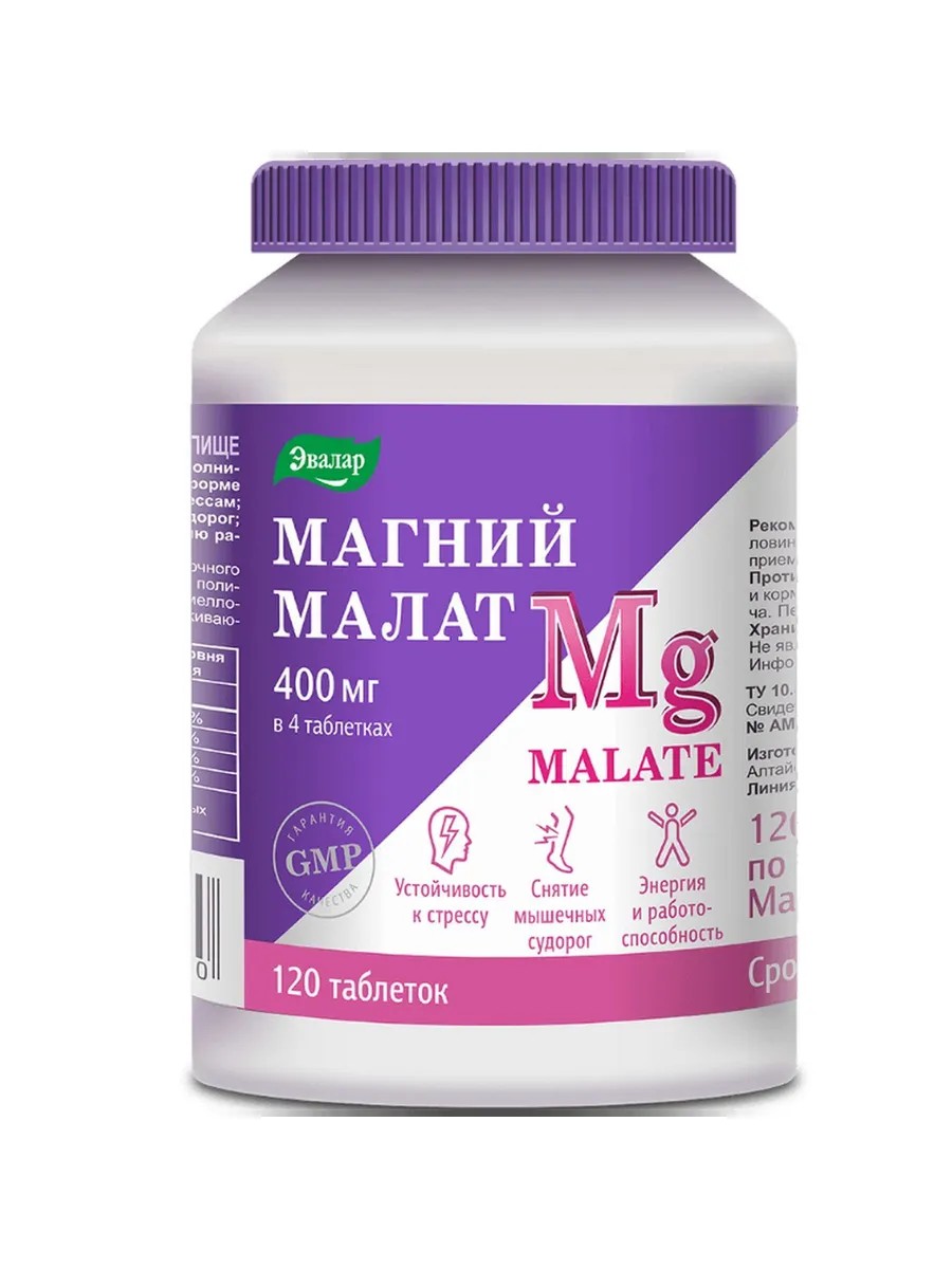Evalar Magnesium Malat tablets P about 1.35g 120pc -1 units