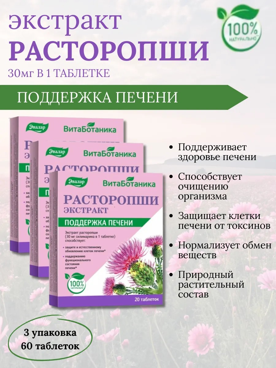 Экстракт Расторопши — это эффективное средство для поддержания здоровья печени. Продукт обладает уникальными свойствами благодаря высокому содержанию силимарина — природного антиоксиданта, который способствует очищению организма и восстановлению клеток печени. Экстракт расторопши оказывает мощное воздействие на детоксикацию и защиту от токсинов, что важно в условиях современного образа жизни, когда печень подвергается значительным нагрузкам.