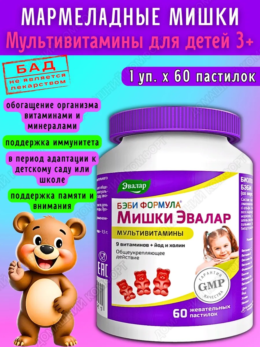| Форма выпуска | бэби формула мармеладные мишки; жевательные мармеладные пастилки для детей с 3-х лет |